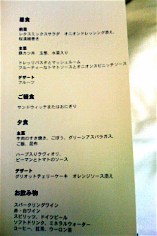 (後日談>同じ時間帯だがANA側の共同運航便だったらしい。なので違うメニューだったとか。)