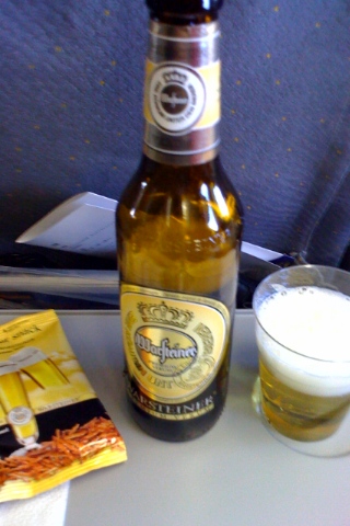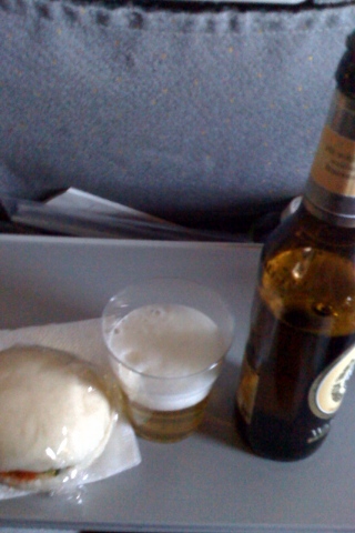 ビジネスクラスのシャンパーニュを少しもらえた。ラッキー。