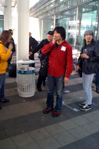 なんでも、ヴォーカルのあるがさん、一日間違えて昨日空港に行ったって(笑)。