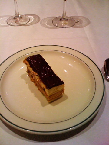 デザートはショコラベースのミルフィーユ。コーヒーはきちんとしたエスプレッソ。うま!