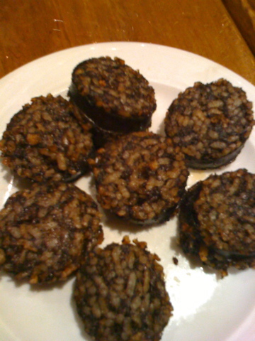 そして、右は豚の血入り黒ソーセージ。お米も入っています。