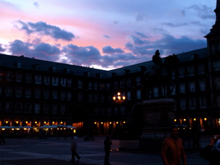 マヨール広場の夕暮れ。ストリートでちょっとだけフラメンコも見れた。本格じゃなくてもうれしい。