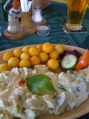 宿近辺のレストランで、ターキーのボヘミア風ブルーチーズソース。