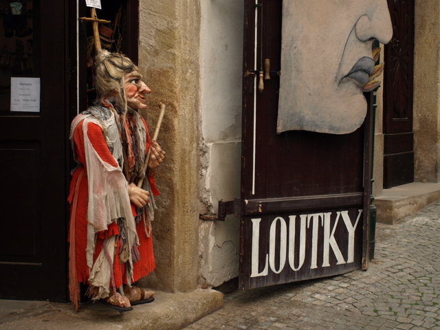 人形細工が有名なチェコ。人形屋さんの店頭にて。