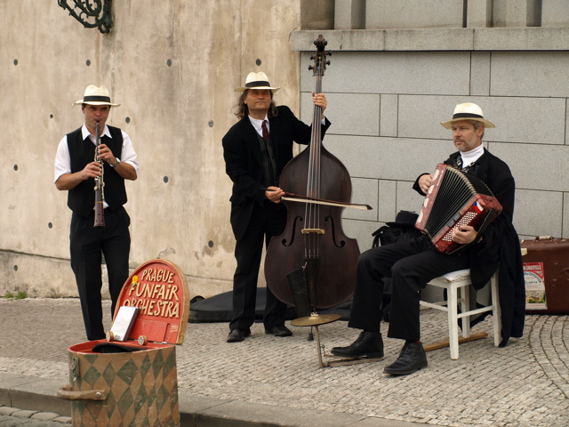 プラハ城の入り口で楽団が演奏中。楽しそう。
