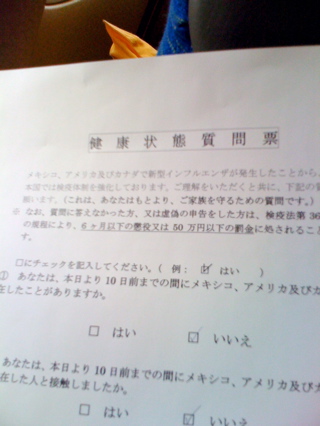 さて、豚インフルで話題らしい検疫状況。