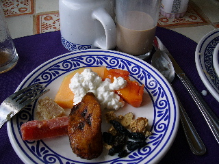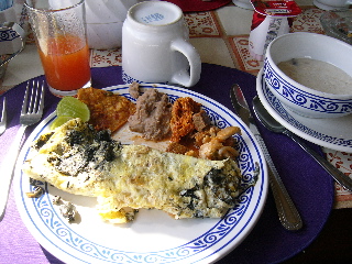 ホテルの朝食ではジュースの他に、オムレツの具として茹でたサボテンが置いてあった。