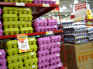 卵パックの色がすごい色。18個で210円ぐらい。日本よりはちょっと安いだけ。