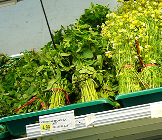 ハーブ類も、ちゃんと生で束になって売っている。