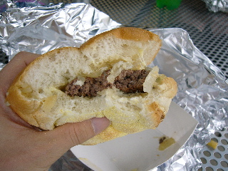 お昼ゴハンは会場前の、テントでやっているハンバーガー屋で買い食い。