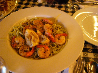 肉に飽きた私は Linguine alla Scampi(手長海老の平打ちパスタ)を注文。。。