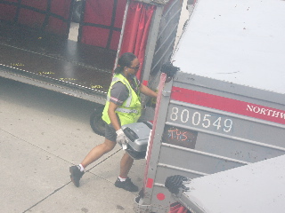 デトロイト空港で僕の荷物が投げられる瞬間(笑)。