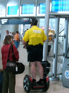 空港内のパトロールとをする警官は南尾セグヴェイで軽やかに移動!わお。