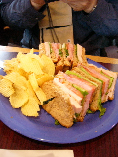 Tsuboyさんは軽く食べようと、サンドイッチを頼んだら結構でかくて食べるのに難儀していた・・・