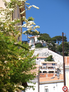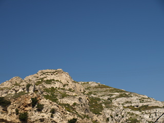ちょっと遠くを見ると、こんな石灰岩の山と青空。南仏!