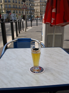 ちょっと早めに着いた私は、駅前のBARで、路上のテーブルでビールを頂きながら